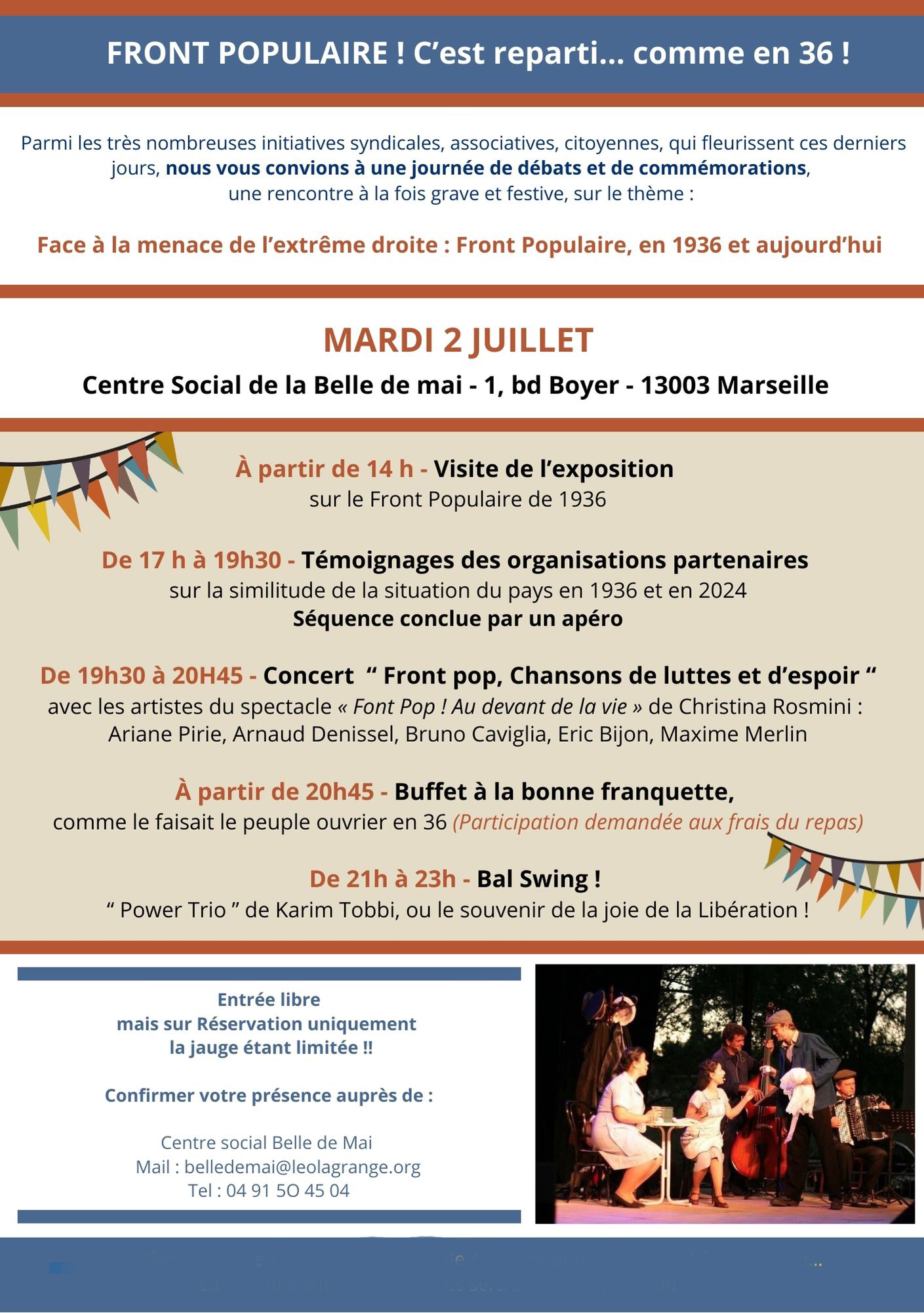 Exposition, Conférence témoignage, concert, buffet, bal