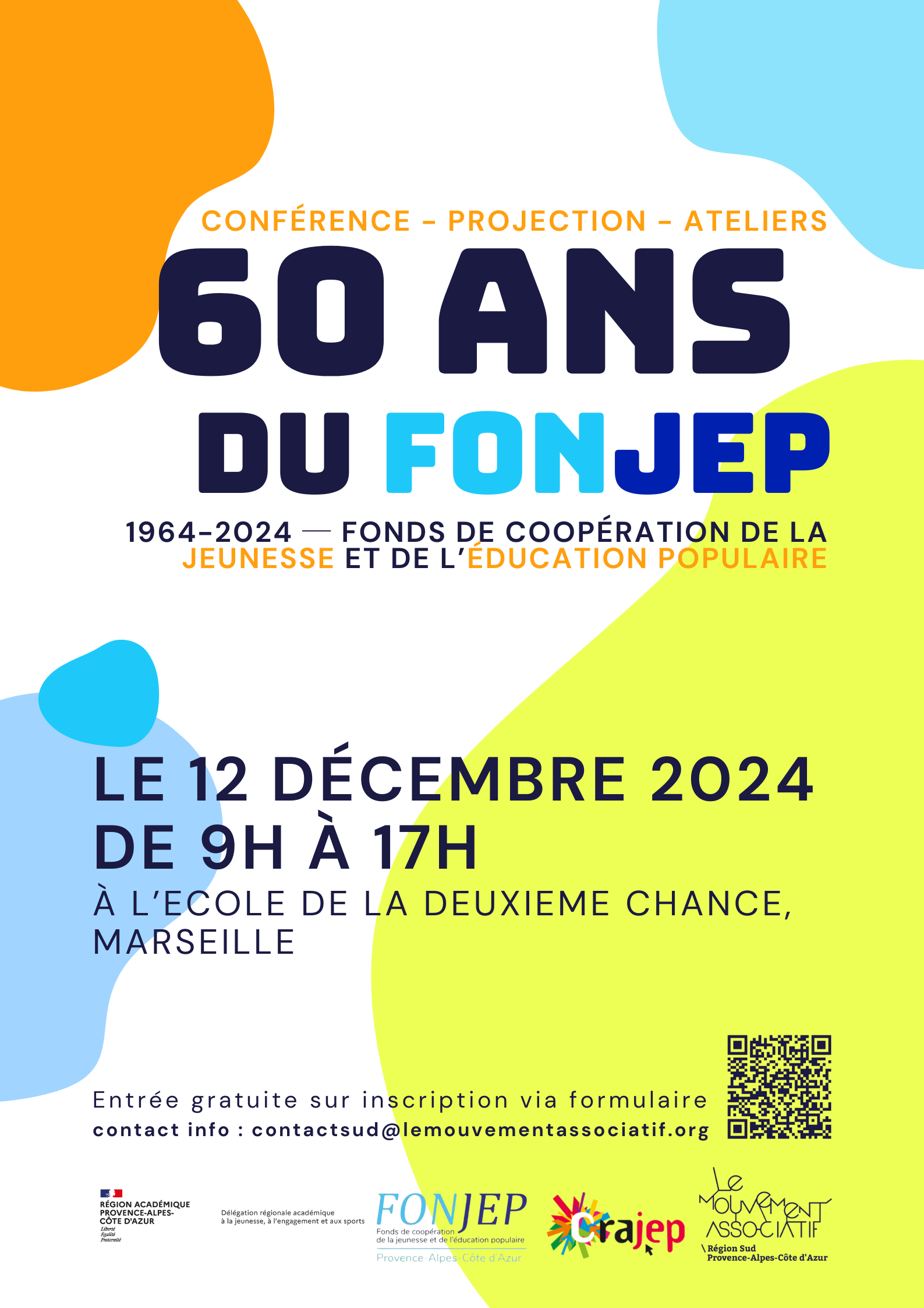Le CRAJEP PACA et la Délégation Régionale Académique à la Jeunesse à l’Engagement et aux Sports (DRAJES PACA) ont le plaisir de vous associer à un événement fondateur organisé par le FONJEP National et son comité régional pour célébrer ensemble les 60 ans du Fond de Coopération de la Jeunesse et de l’Education Populaire !